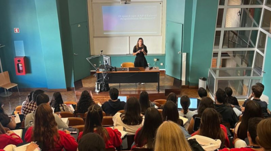 Nas palavras da Maria, "apesar de ter sido uma nova experiência, foi igualmente um gosto partilhar a minha experiência com uma sala repleta de estudantes interessados em ouvir e participar!"