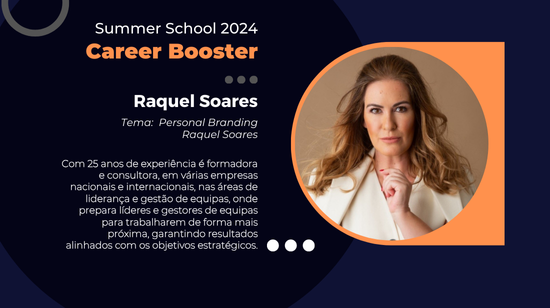 Temos o prazer de anunciar a presença da nossa convidada Raquel Soares na Summer School 2024 – Career Booster!