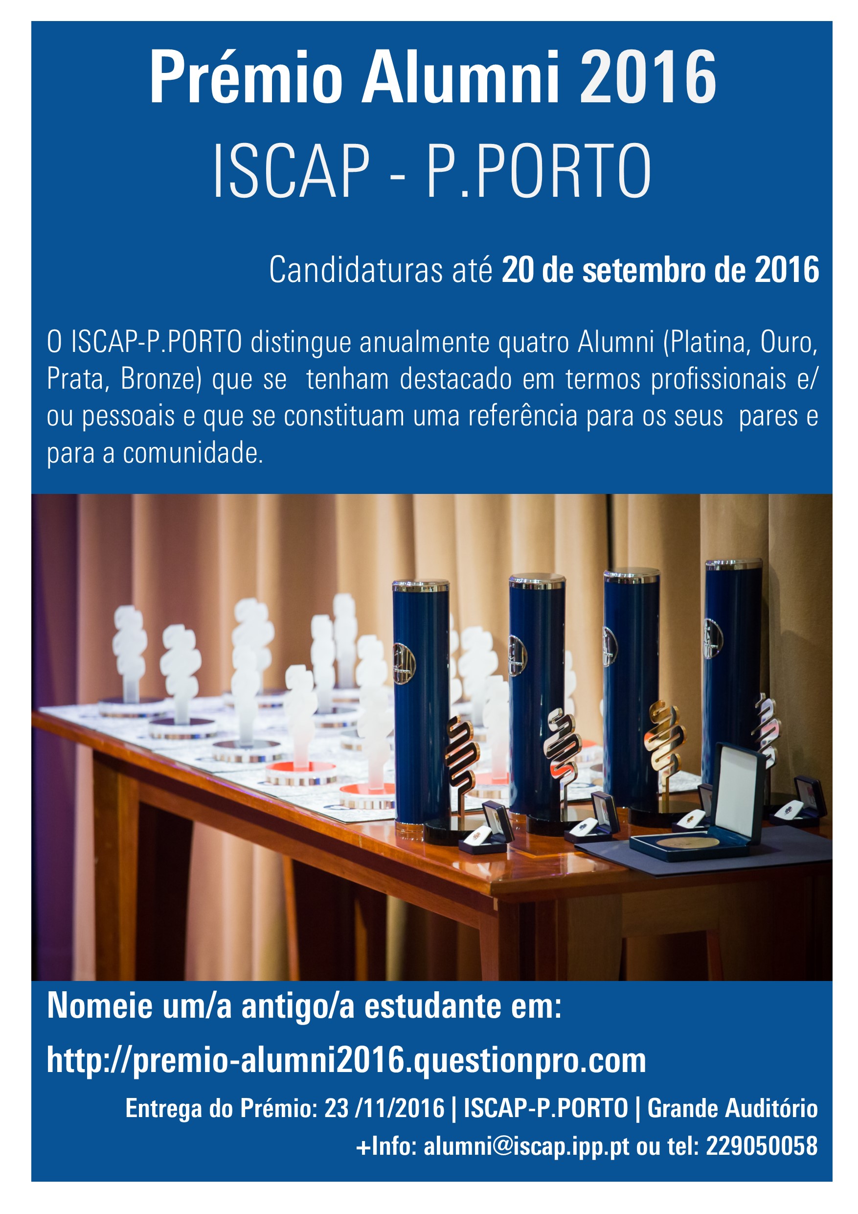 As candidaturas ao Prémio Alumni ISCAP-P.PORTO encontram-se abertas até ao dia 15 de outubro de cada ano.