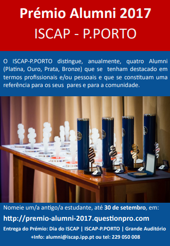 Pode consultar o regulamento do Prémio Alumni ISCAP-P.PORTO AQUI