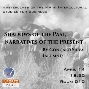 Masterclass do Mestrado em Intercultural Studies for Business “Shadows of the Past, Narratives of the Present”, 14 de abril, 18:30, sala 010.