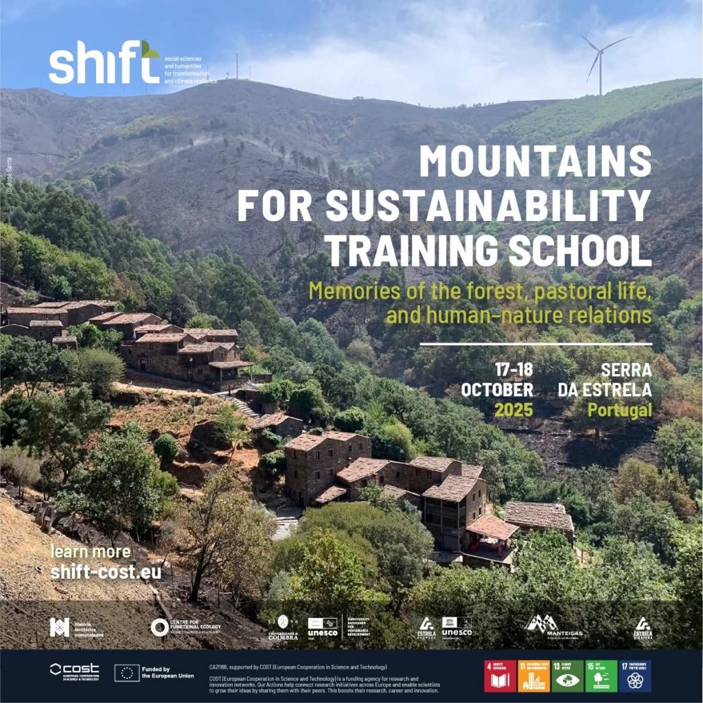 The Training School “Mountains for Sustainability” is part of the activities of the COST Action SHiFT – CA21166 “Social Sciences and Humanities for Transformation and Climate Resilience”. It invited participants to explore the intersections between ecology, memory, and resilience, grounded in the Mountains for Sustainability initiative and projects such as Memories of the Forest. The Training School represents an important step in continuing this collaborative work, reinforcing the relevance of memory, pastoral culture, and local knowledge in building more sustainable futures for mountain regions.