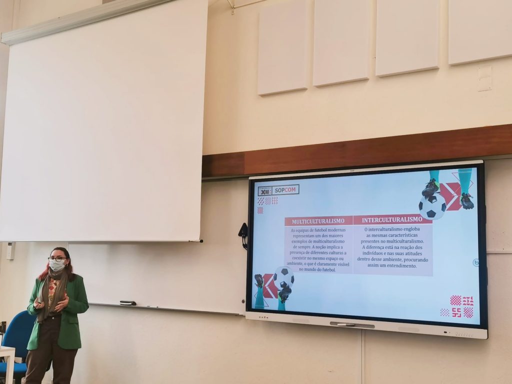 The junior researchers presented the communications “PROJECT ELYSIAN: A proposal to improve the integration and inclusion of professional football players, coaches and staff in different cultural environments – Portuguese Focus” and “Street art as heritage and resource of creative industries”, respectively.