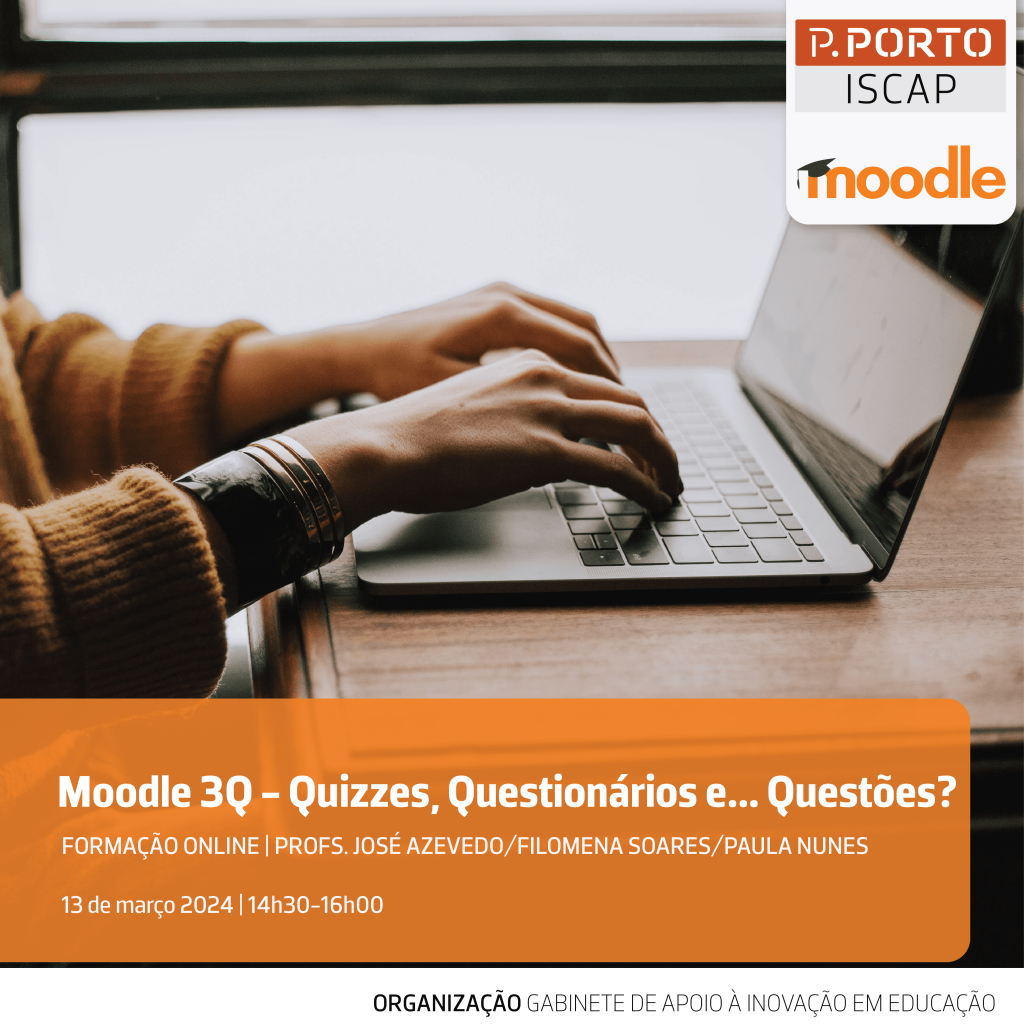 No próximo dia 13 de março terá lugar a ação de formação “Moodle 3Q – Quizzes, Questionários e… Questões?…”. A formação destina-se aos docentes do ISCAP e tem como objetivo dotar o formando dos conhecimentos necessários à criação de testes com o Moodle.